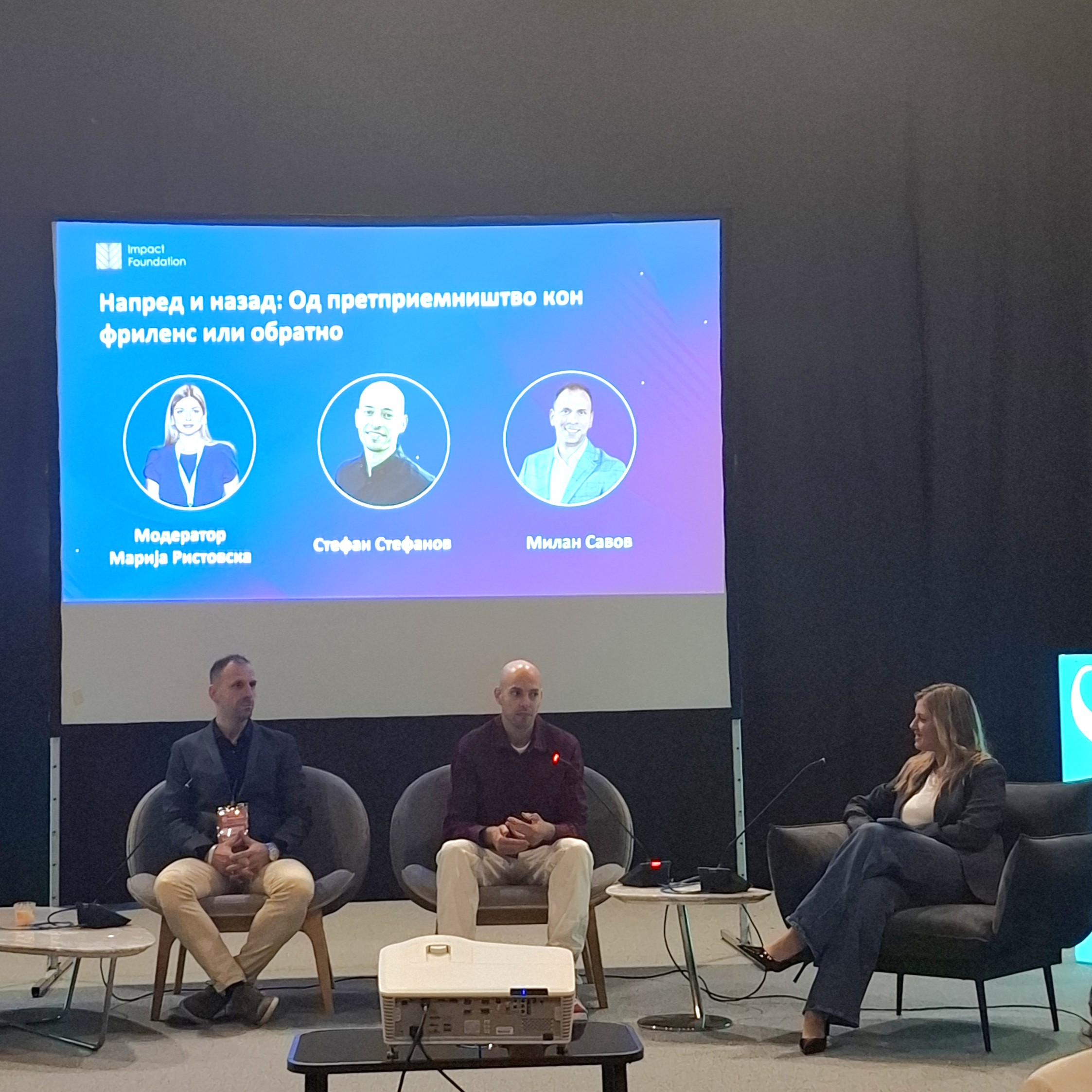 My favorite part of the day was the panel with Stefan Stefanov, moderated by Marija Ristovska, titled: “Forward and Backwards: From Entrepreneurship to Freelancer and vice versa.”